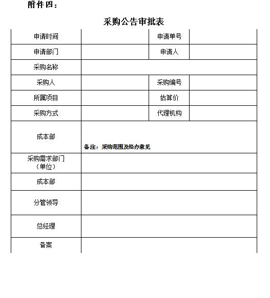 附件四:《采購(gòu)公告審批表》