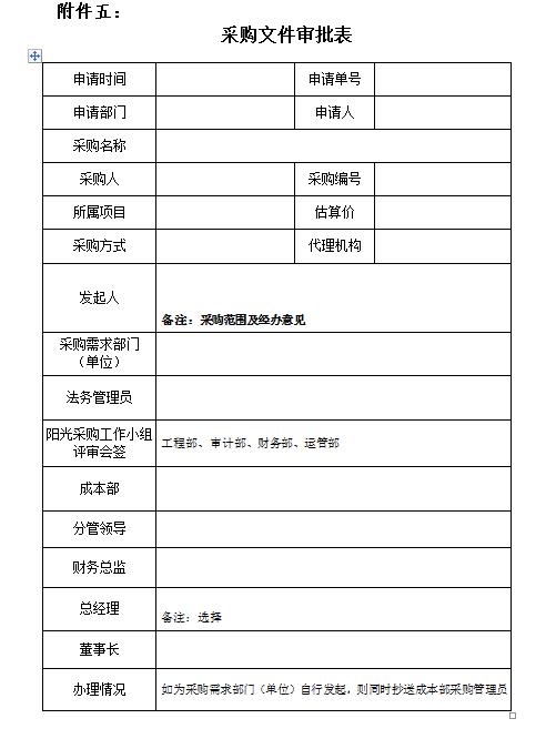 附件五:《采購(gòu)文件審批表》