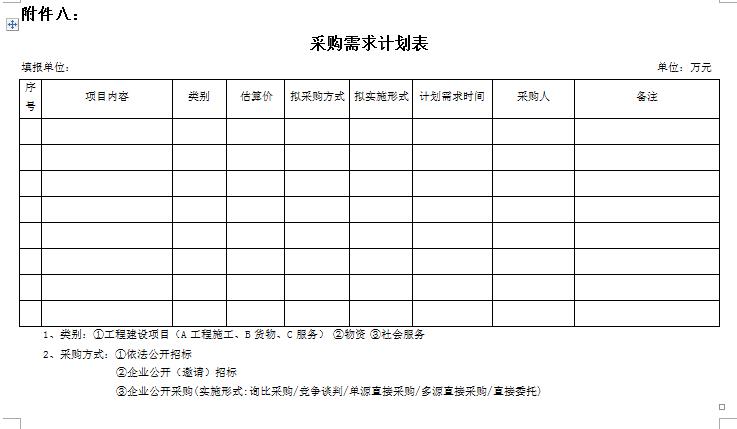附件八:《采購(gòu)需求計(jì)劃表》