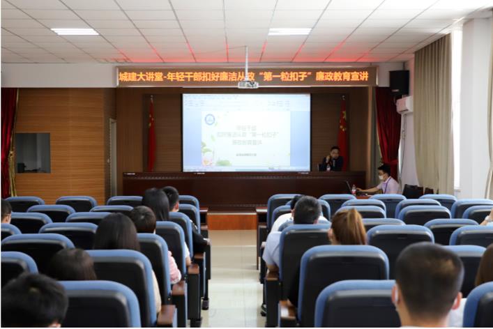 5月27日,威海城建集團開展年輕干部扣好廉潔從政“第一??圩印绷逃v活動,教育引導年輕干部對黨忠誠,堅定理想信念,正確對待權利,嚴守法紀法規(guī),為集團高質(zhì)量穩(wěn)定發(fā)展營造風清氣正的政治生態(tài)。集團紀委書記王月輝作專題宣講,集團全體年輕干部員工參加了宣講活動。
